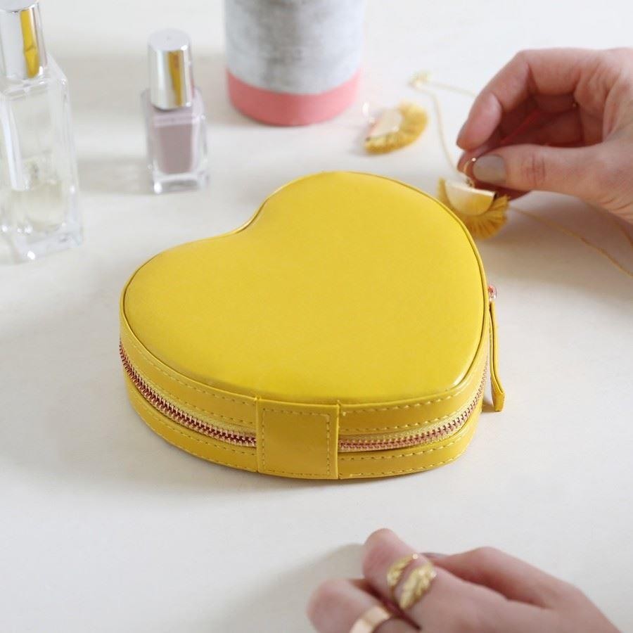 This contemporary Yellow Heart PU Travel Jewellery Box makes a thoughtful present, to store all precious trinkets that have been gifted over the years of courtship and romance!
