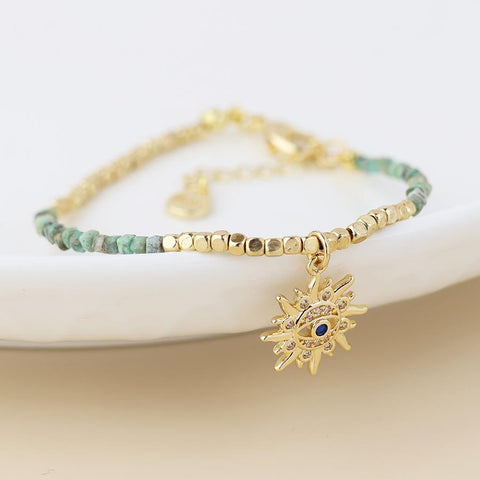 Faux Gold Turquoise Bead Sun Charm Bracelet