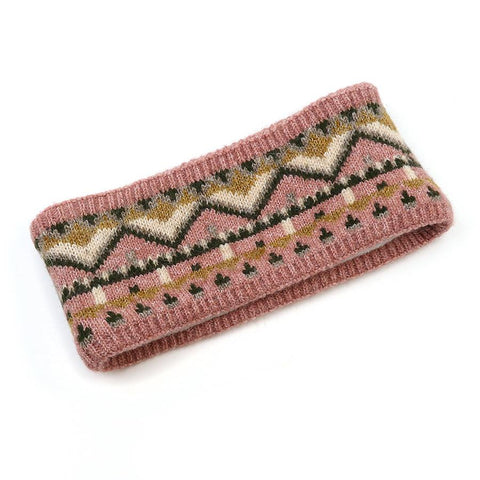 Dusky Pink & Green Mix Fairisle Pull Through Scarf