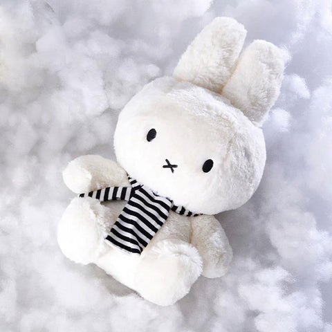 Miffy With Scarf Lrg Brrrr, It gets so cold during the winter time even Miffy's scarf can't keep her warm. Will you cuddle her to make it better? Your dress-up Miffy is handcrafted. You can wash her, but we don't recommend using a machine. Hand wash only. Miffy's filling is made of 100% recycled polyester and our suppliers are carefully selected and all meet the “ethical supply chain” (ICTI) status. Miffy with Scarf - 33 cm High Pile Fur