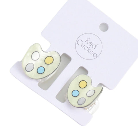 Show your love for art with these painting board hair clips. The fun and quirky design is sure to brighten your look. The hair accessories are made from acetate and measure approx. 2.5 cm.