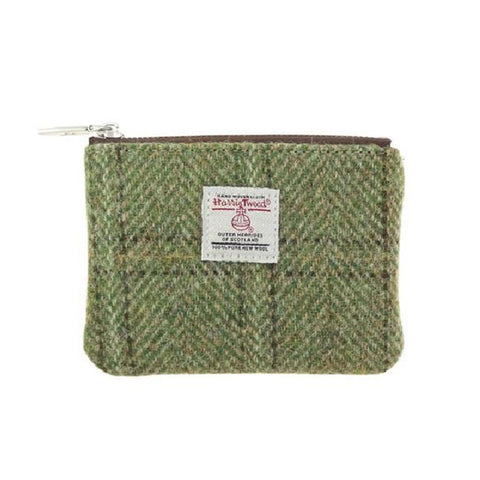 Harris Tweed Eriskay Zip Pouch in Green Herringbone Overcheck