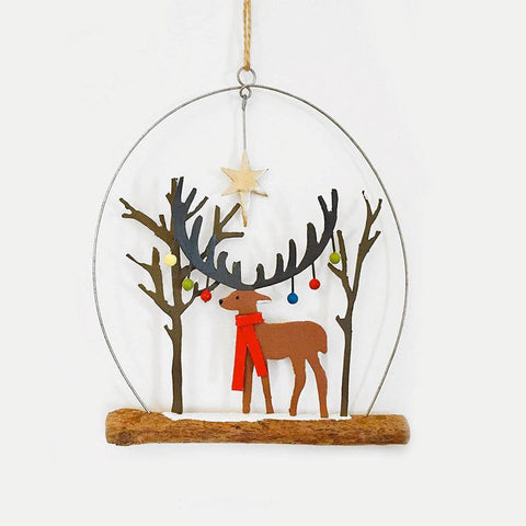 Stag with Scarf and Baubles Metal Hanging Decoration