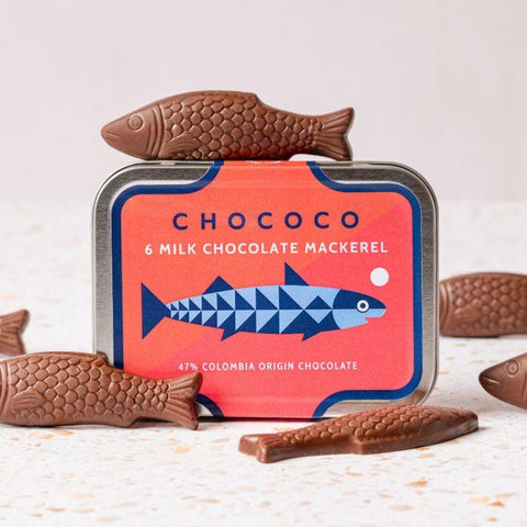This unique spin on a tin of sardines was inspired by the mackerel that can often be spotted in the waters around Swanage, where all things Chococo started! The Milk Chocolate Mackerel are handcrafted and made from their signature 47% single origin milk chocolate.